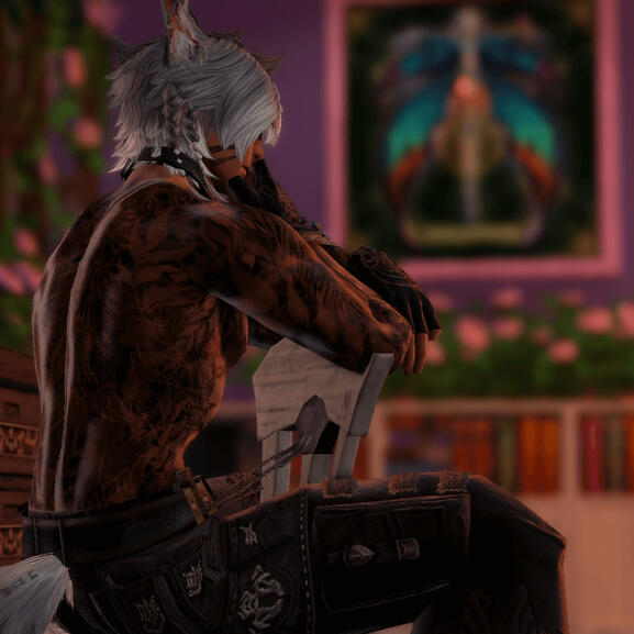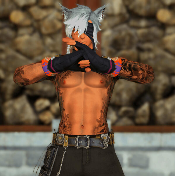 Vette was born in Southern Thanalan, In the Sagoli Desert. Without going into too many specific details, the man had a rough up bringing which winded up in him running East. To Hingashi. He had learn and adapted to being scorned and disapproved of for simply being what he was, but found acceptace and a new life. It was there in trained in Taijutsu, and similar Shinobi Arts as an adopted member into a relatively small clan.His particular talent and nearly unstable determination had earned him many personal achievements in his life, but ultimately only ever found one use for them, and it was never the morally correct side of things. He is a man that was bred for combat, and thrives for battle. At one time fighting to simply win, and be the best. Now, he fights to -fight-. To feel the thrill only combat can truly provide.As for recreational hobbies, Vette has an affinity for most animals. In particular, fish, and large felines. Owning several massive fishtanks of his own, and well over Twenty different species, it is safe to say he is a bit of a animal person. He does also partake in some carptentry, and enjoys playing music given he knows the instrument.